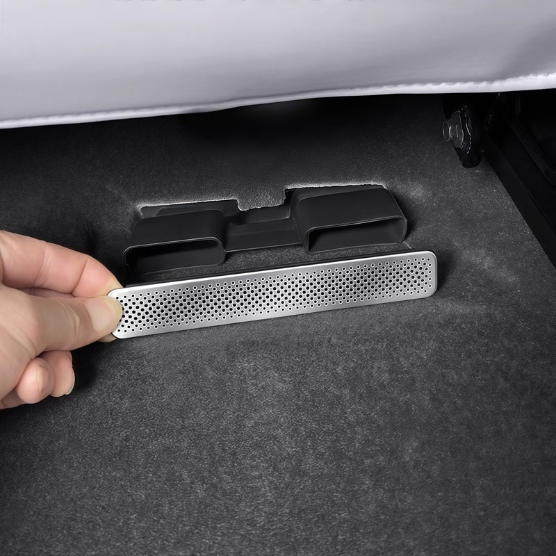 This under-seat air vent cover set is designed specifically for the XPENG P7+, providing a precise fit for the rear seat air outlet area. It helps prevent small items, dust, and debris from falling into the air vents while maintaining proper airflow.